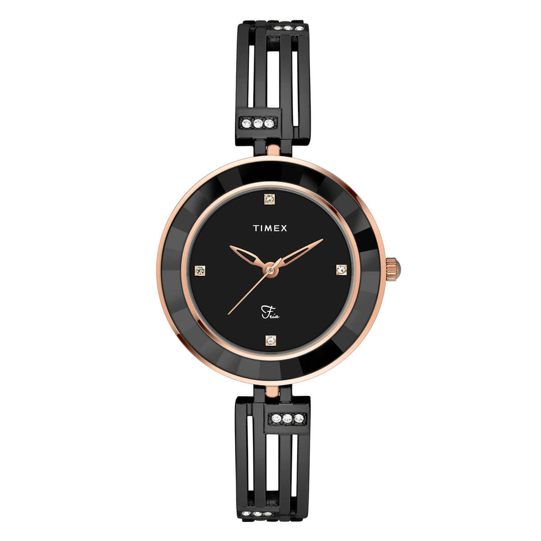 Timex Fria Women's Black Dial Round Case 3 Hands Function Watch -TWEL16201