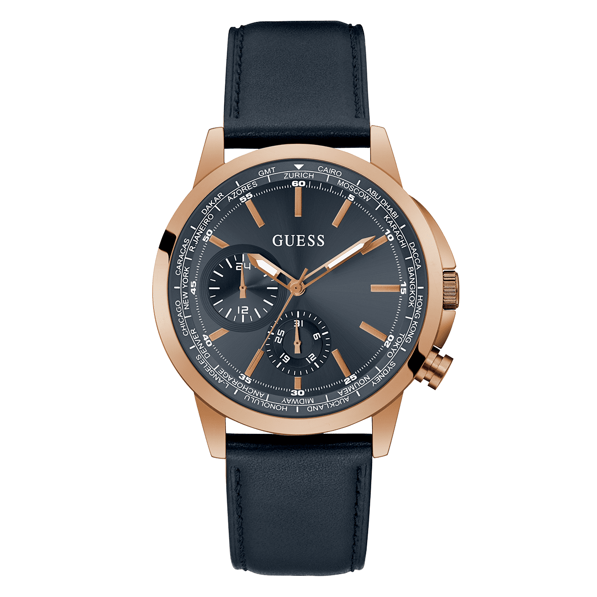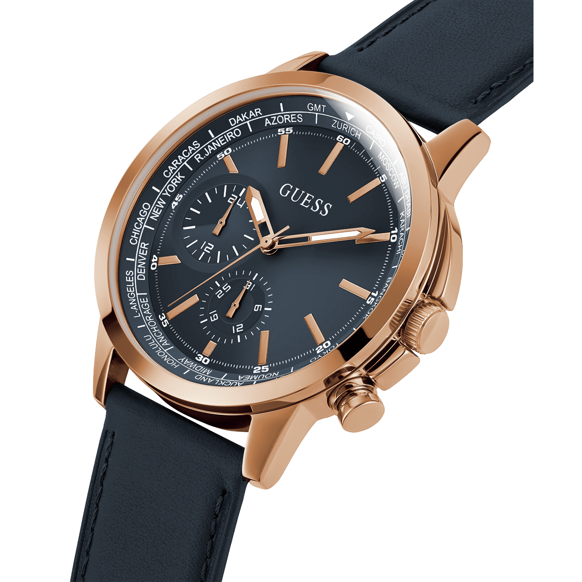 GUESS Mens Navy Rose Gold Tone Multi-Function Watch