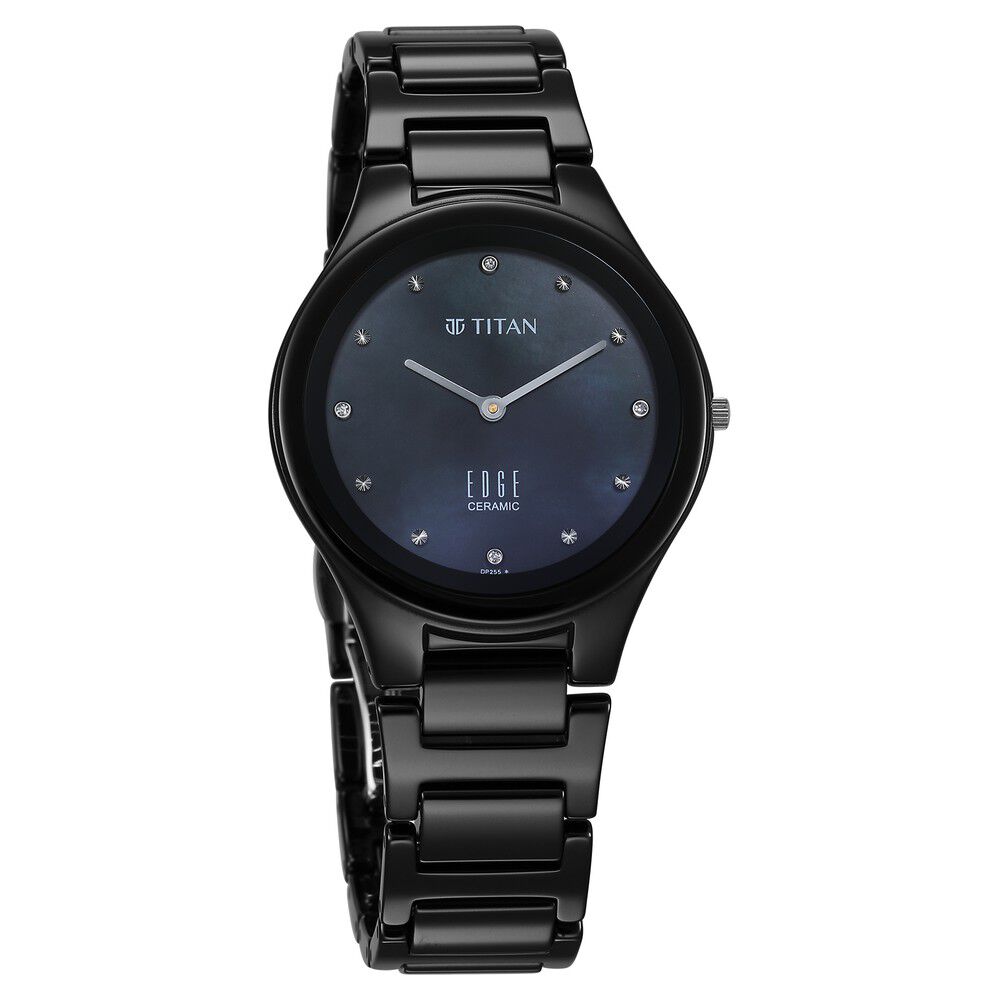 Titan Edge Ceramic Quartz in Glossy Black with Diamonds and Rich Mother of Pearl Dial Watch for Women