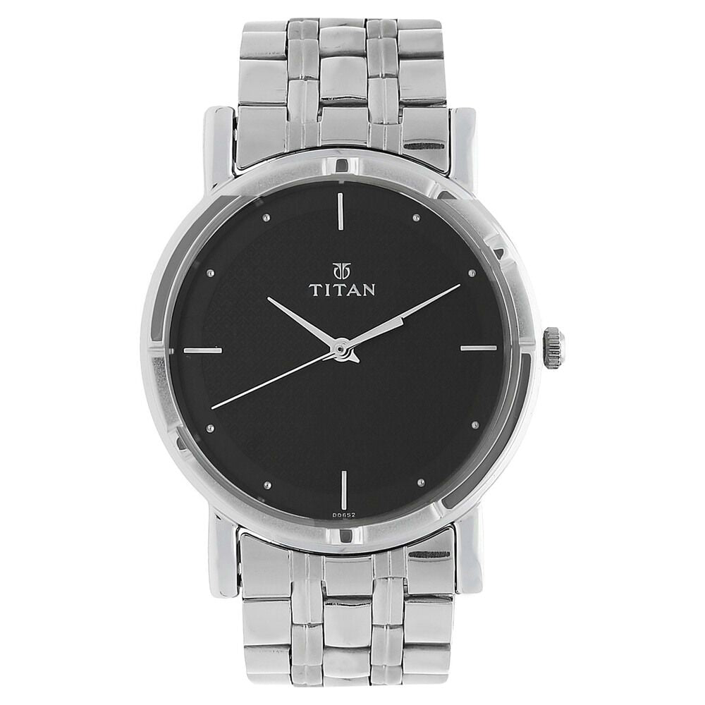 Titan Men's Elegance Watch: Black Dial with Sleek Link Strap NN1639SM02