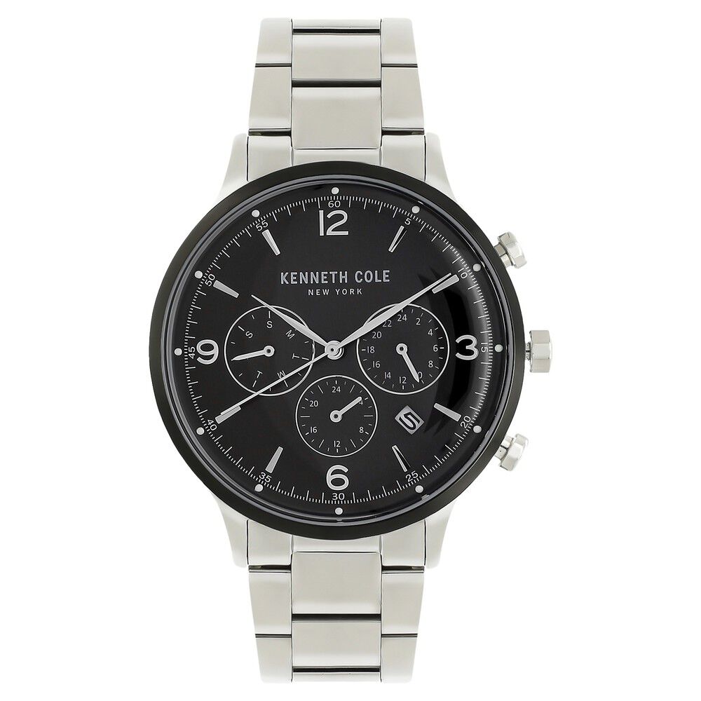 Kenneth Cole Quartz Multifunction Black Dial Metal Strap Watch for Men-NCKC15177003MN