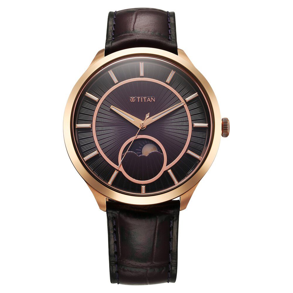 Titan Men's Urban Edge Lustrous Gold Dial Leather Watch NP1802SL09
