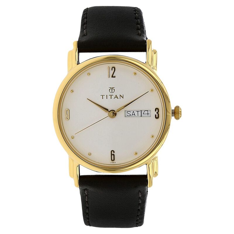 Titan White Dial Analog With Day And Date Leather Strap Watch For Men
