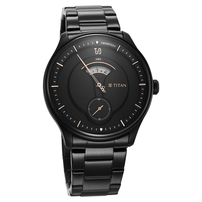 Titan Quartet Black Dial Analog Stainless Steel Strap Watch For Men