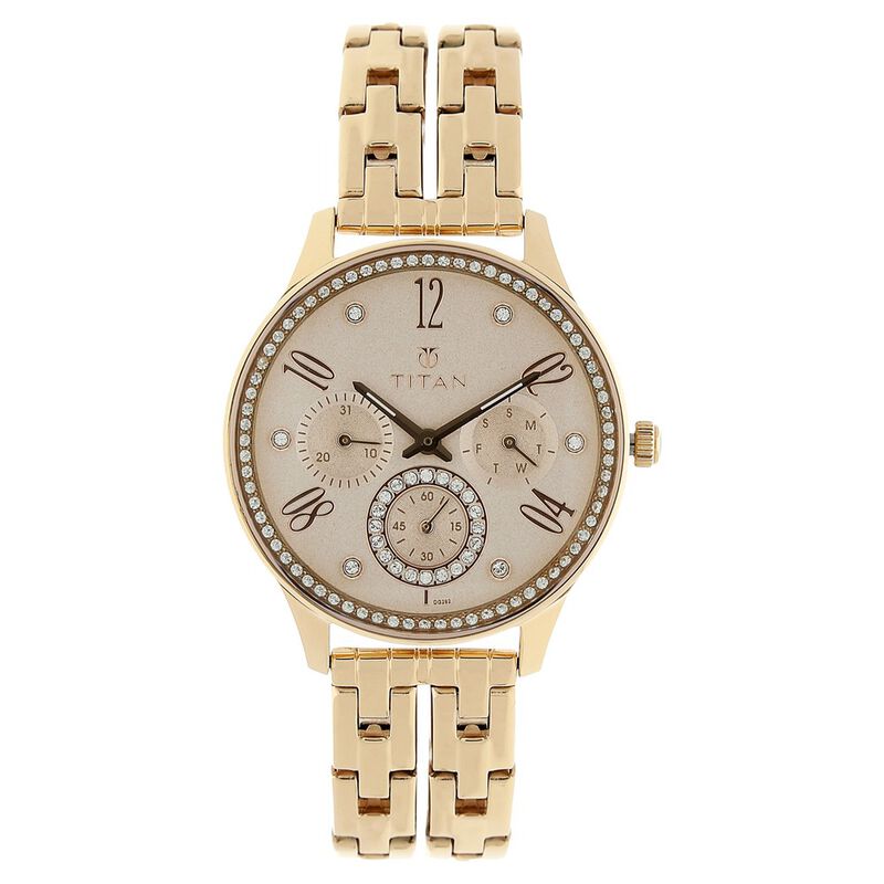 Titan Quartz Analog Rose Gold Dial Stainless Steel Strap Watch For Women