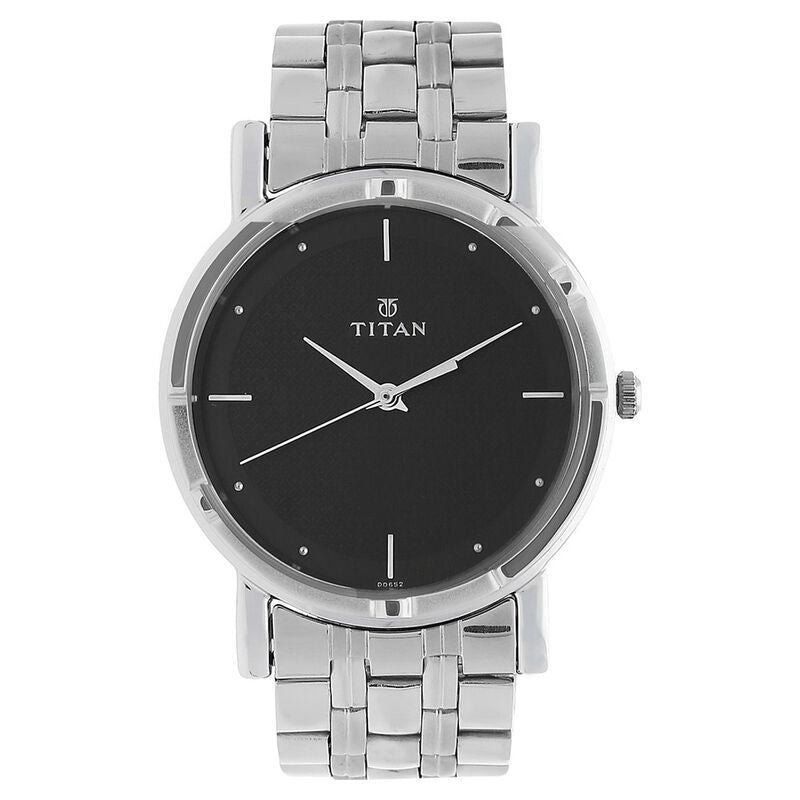 Titan Men's Elegance Watch: Black Dial With Sleek Link Strap