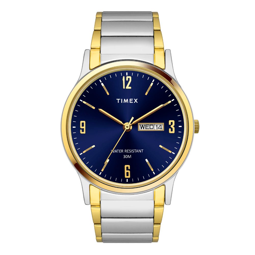 Timex Classics Men's Mechanical Automatic Wind Blue Dial Round Case Day Date Function Watch -TW000R436