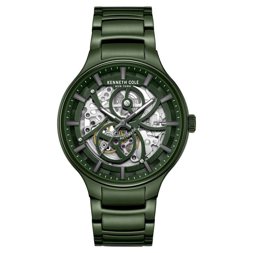Kenneth Cole Automatic Green Dial Stainless Steel Strap Watch For Men-NTKCWGY0059803MN