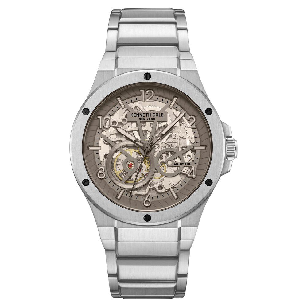 Kenneth Cole Automatic Grey Dial With Silver Stainless Steel Strap Watch For Men-NTKCWGY0046303MN