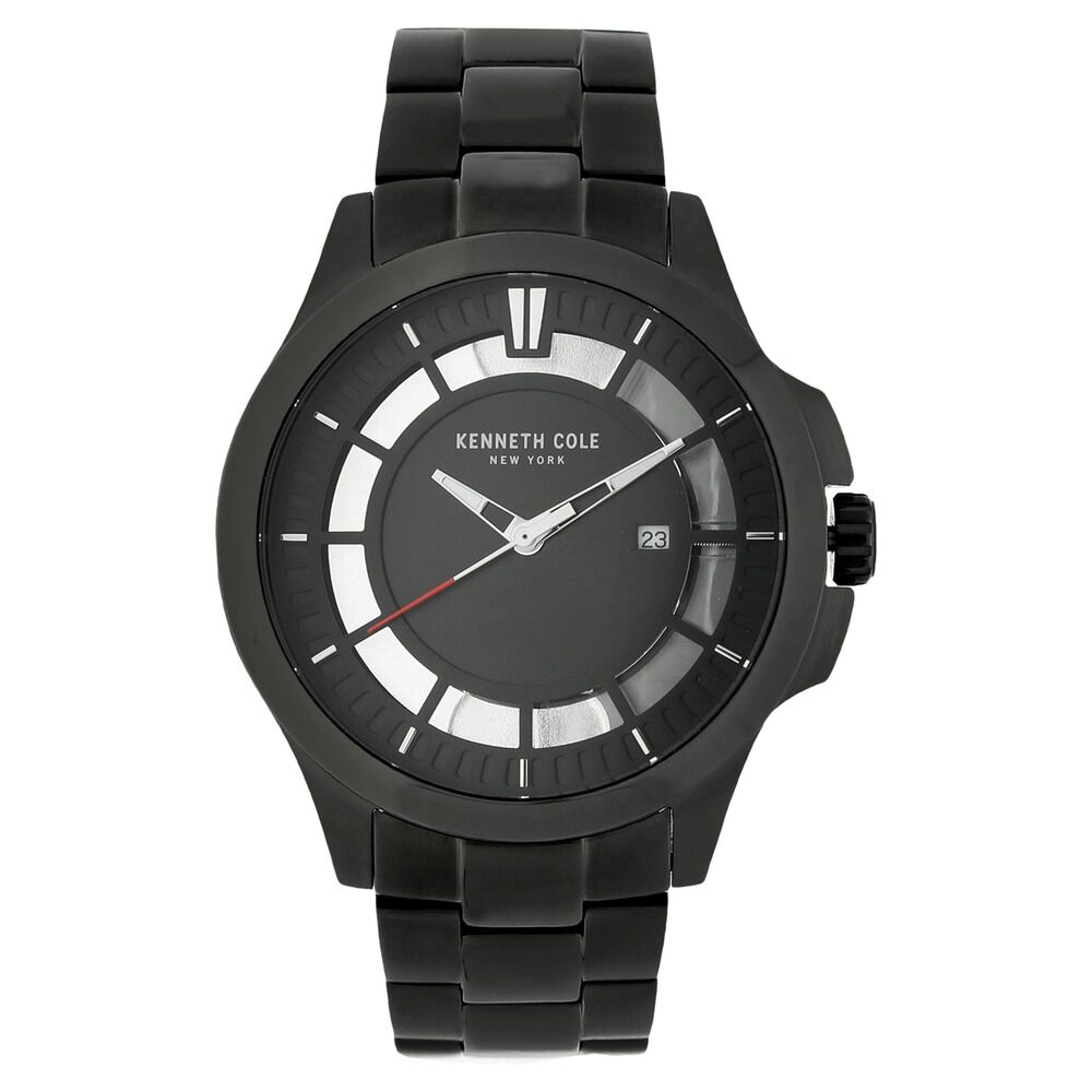 Kenneth Cole Quartz Analog with Date Black Dial Metal Strap Watch for Men-NCKC15103001MN