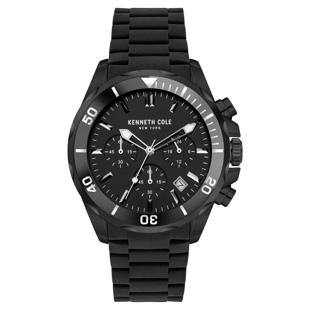 Kenneth Cole Quartz Chronograph Black Dial Silicone Strap Watch for Men-NDKCWGO2105002MN