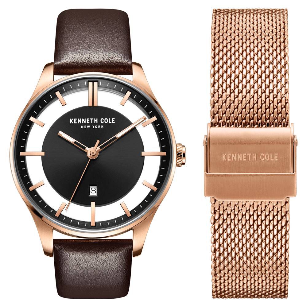 Kenneth Cole Quartz Analog Brown Dial Leather Strap Watch for Men-NDKC50777003MN