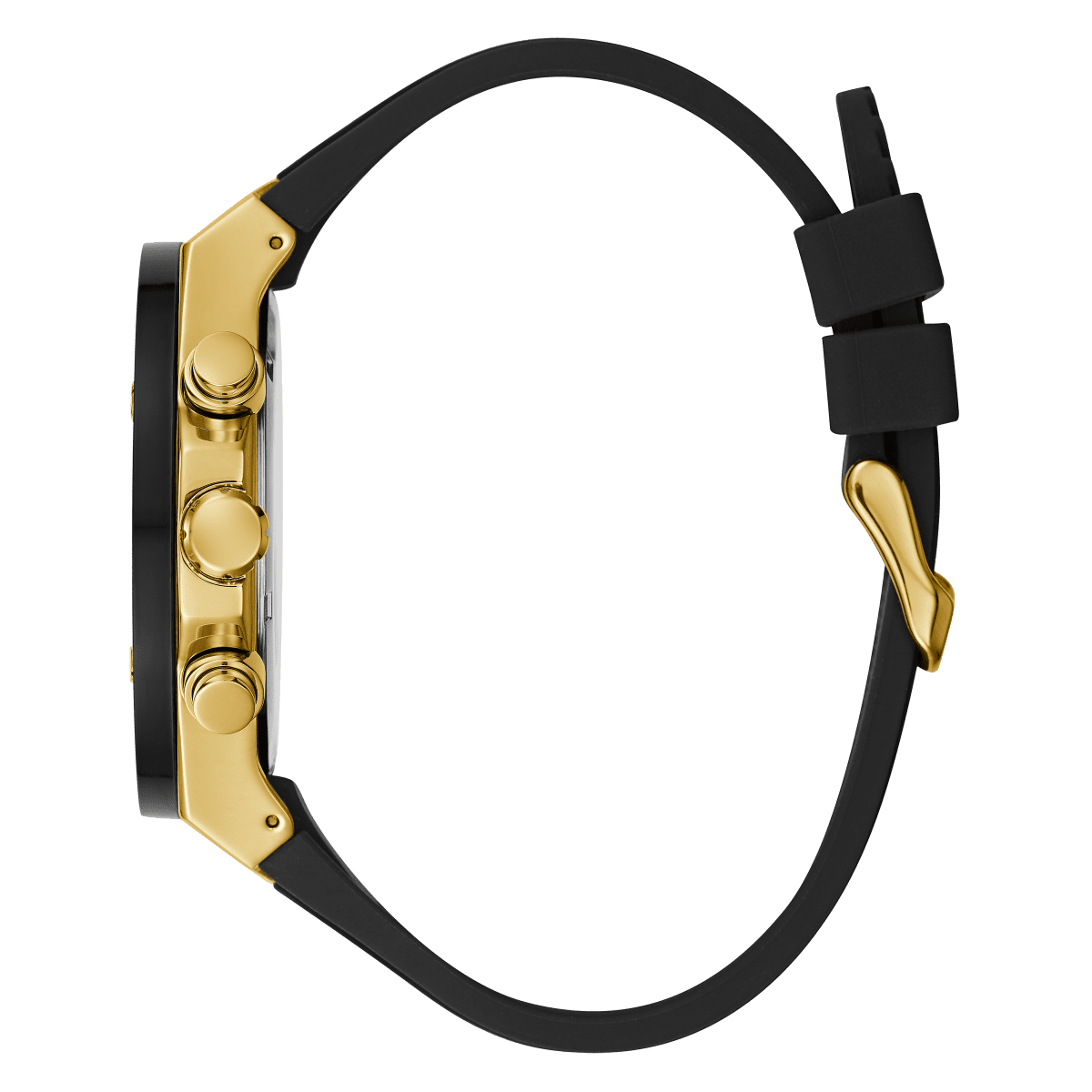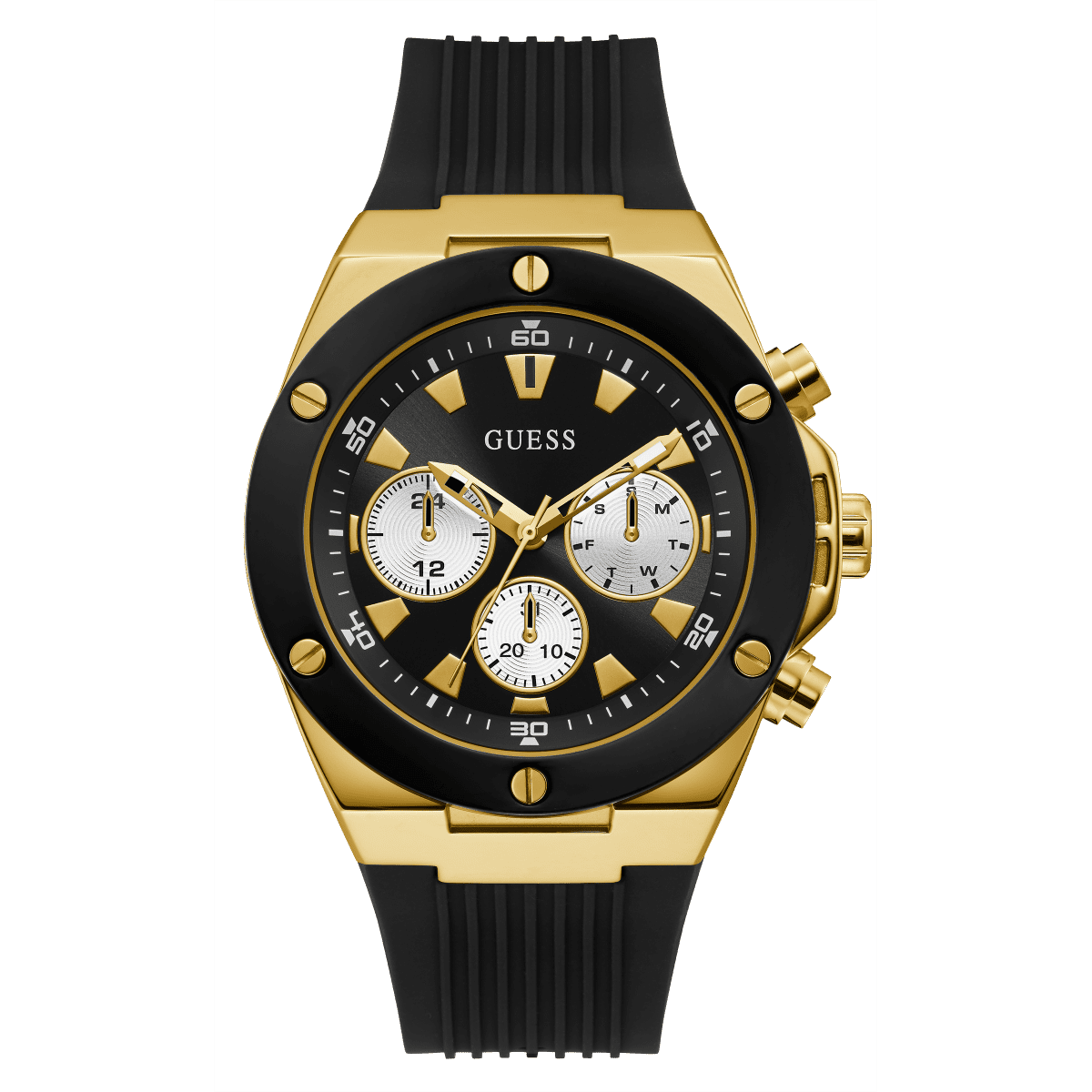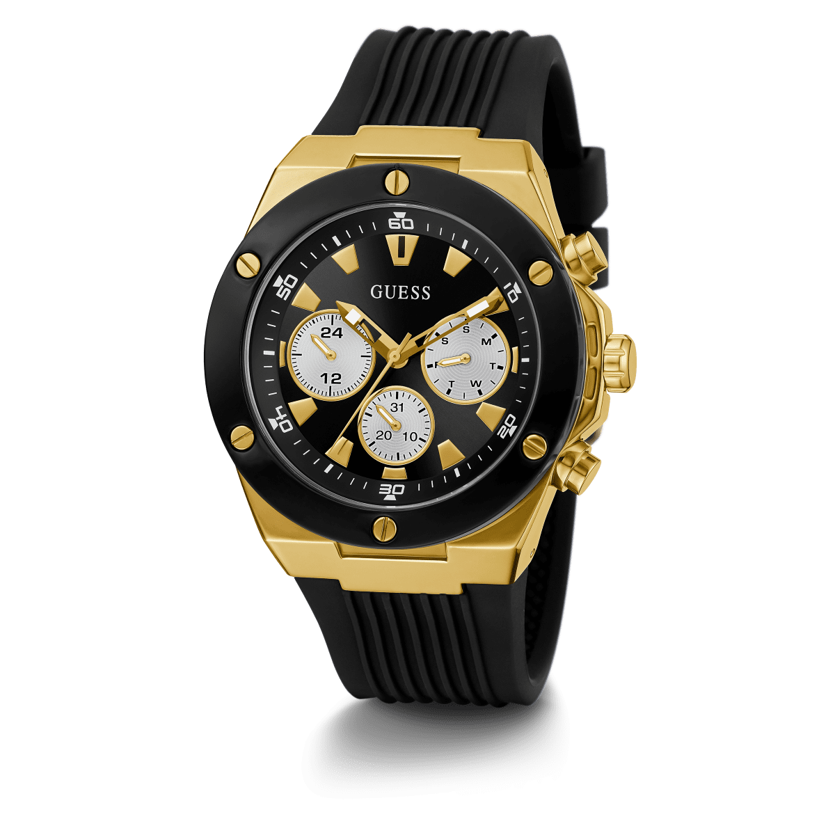 GUESS Mens Black Gold Tone Multi-Function Watch