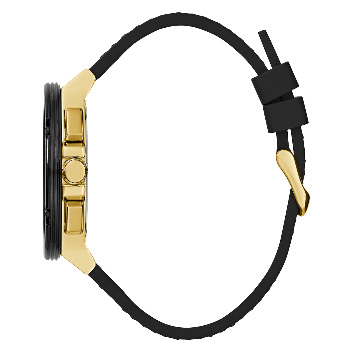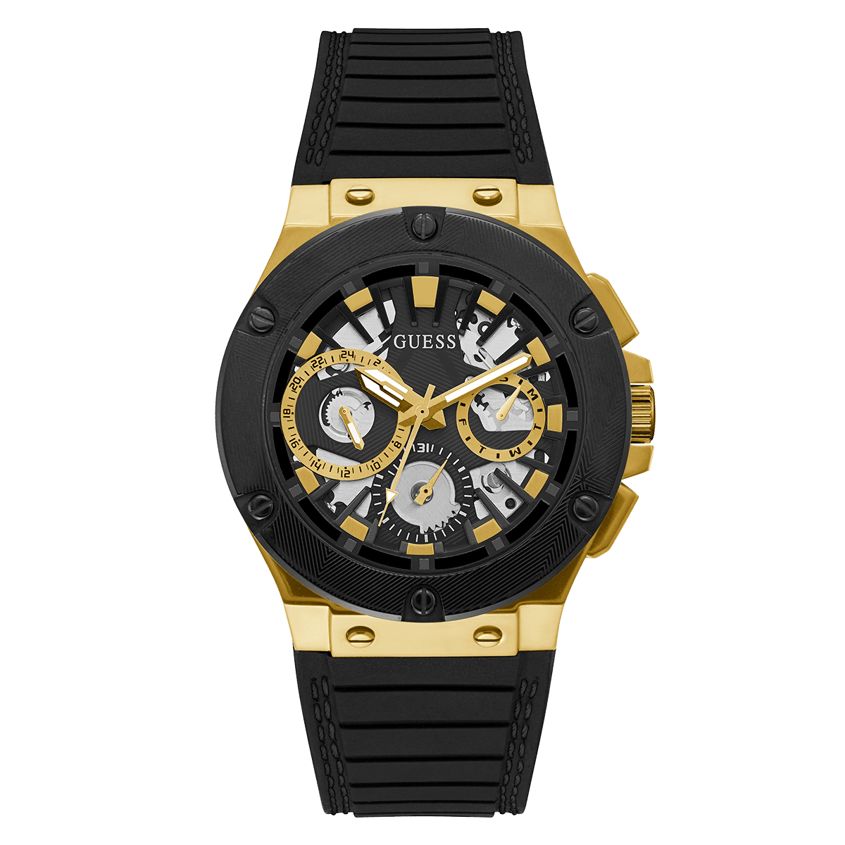GUESS Mens Black Gold Tone Multi-Function Watch