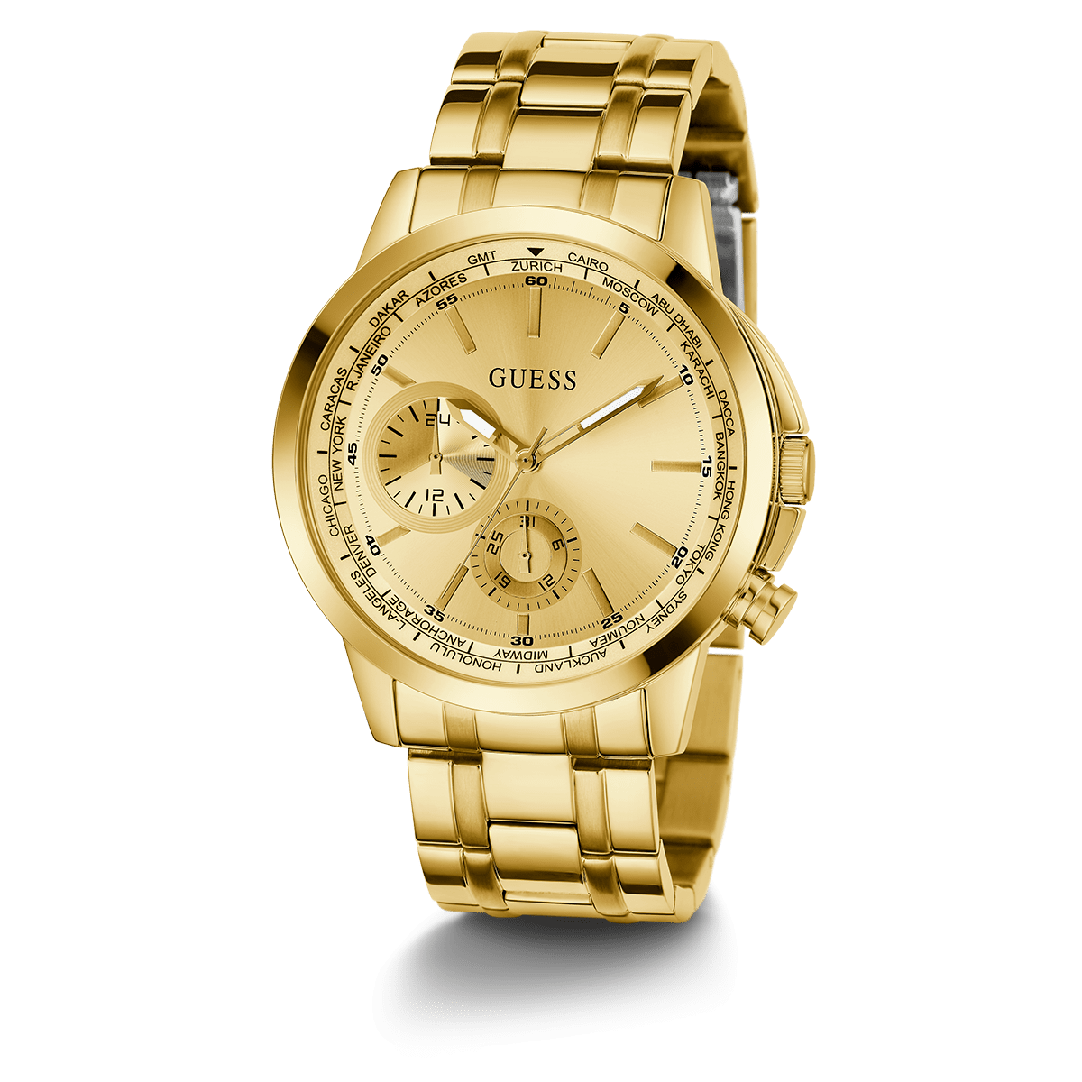 GUESS Mens Gold Tone Multi-Function Watch