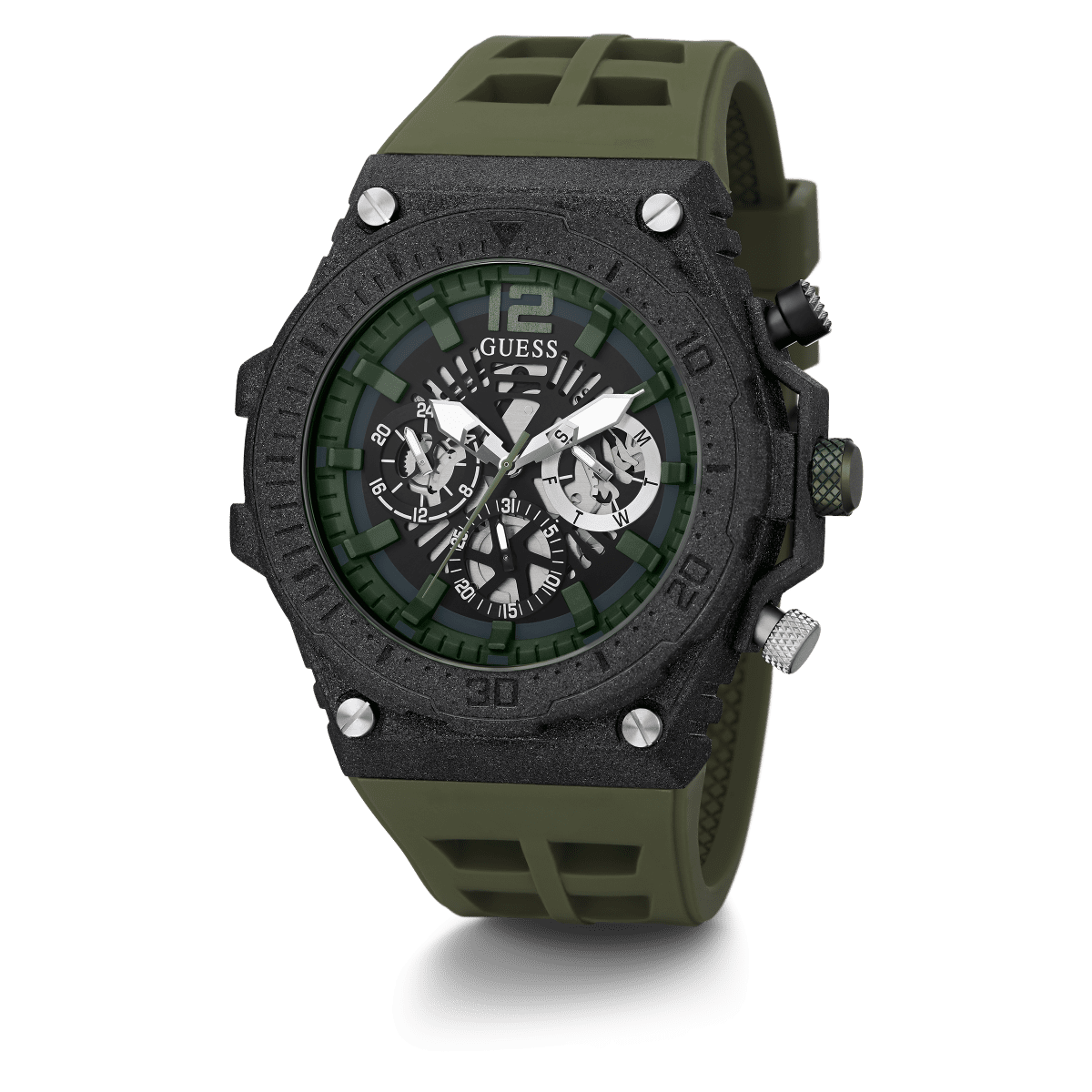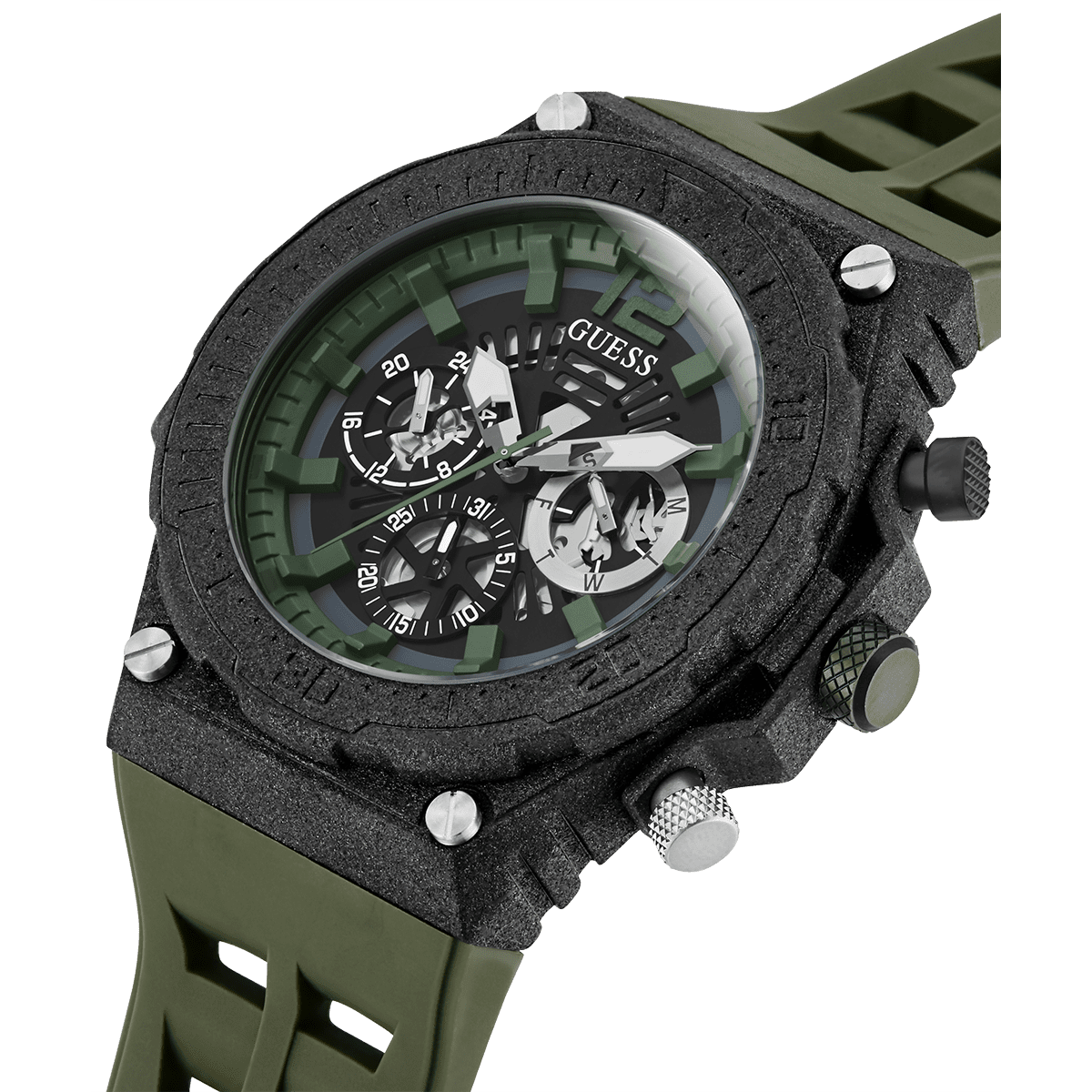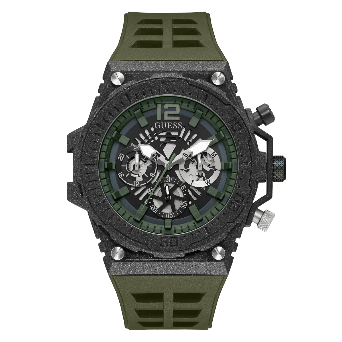 GUESS Mens Green Black Multi-Function Watch