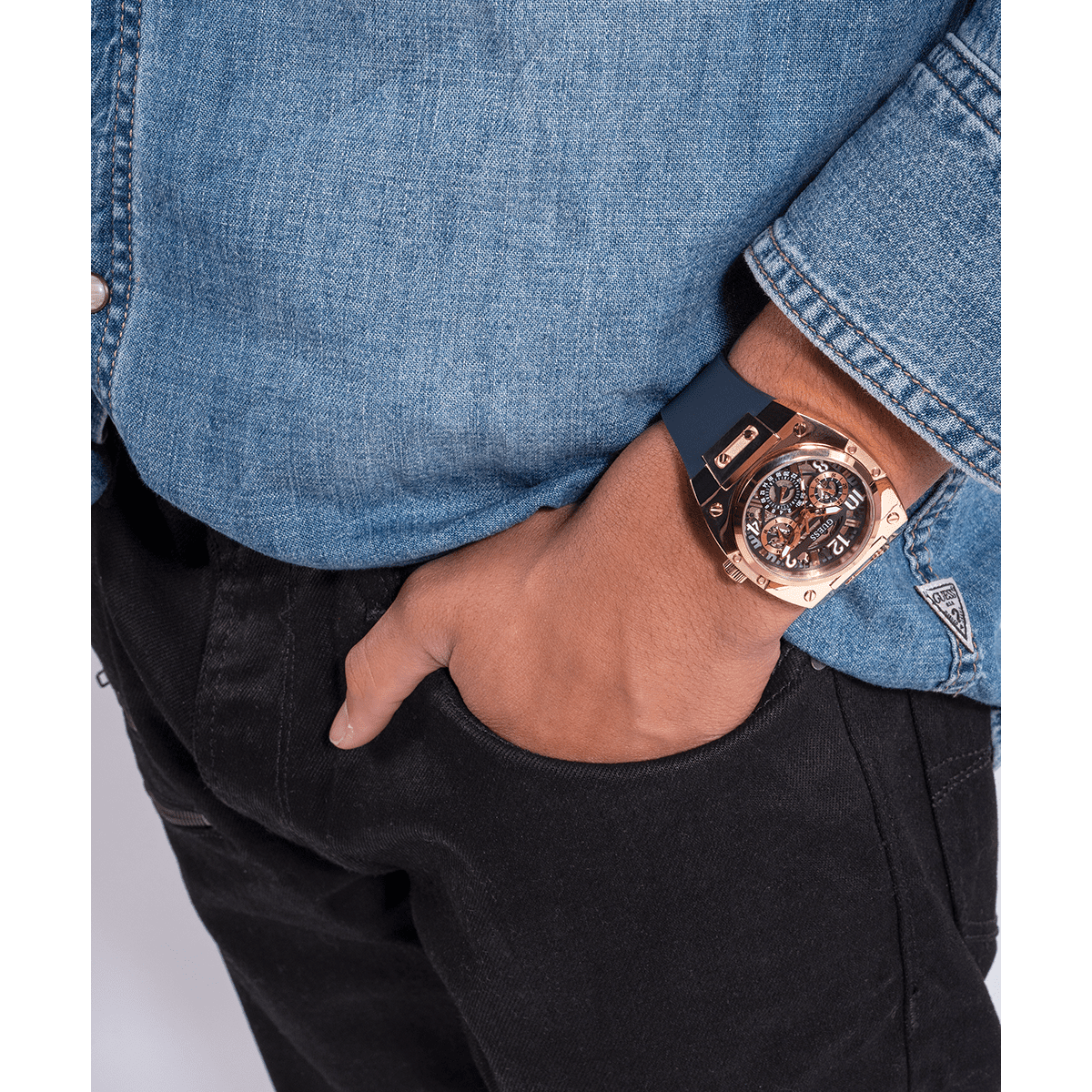 GUESS Mens Navy Rose Gold Tone Multi-Function Watch