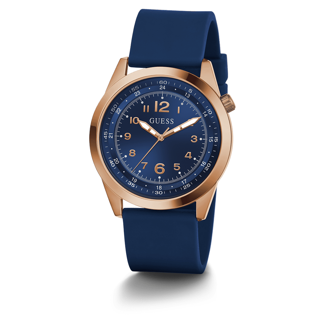 GUESS Mens Blue Rose Gold Tone Analog Watch