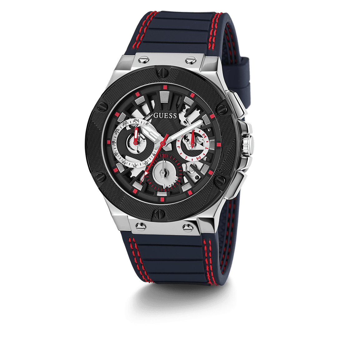 GUESS Mens Navy Silver Tone Multi-Function Watch