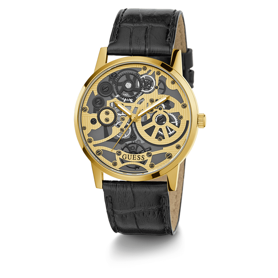 GUESS Mens Black Gold Tone Analog Watch