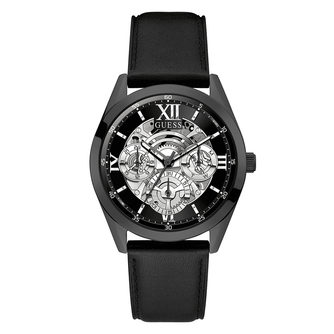 GUESS Mens Black Silver Tone Multi-Function Watch