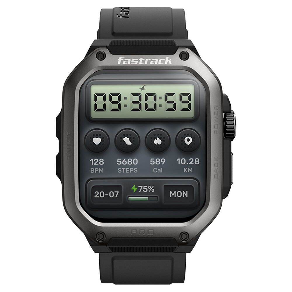 Fastrack Active Pro with 4.69 cm AMOLED Display and AOD, Functional Crown, BT Calling Rugged Smartwatch with Black Strap 38106PP01