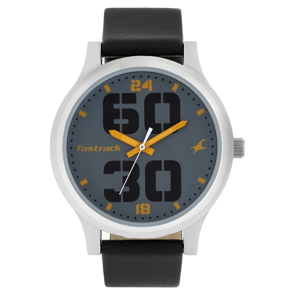 Fastrack Bold Quartz Analog Grey Dial Leather Strap Watch for Guys NR38051SL03