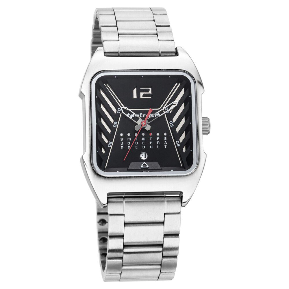 Fastrack Gamify Quartz Analog with Day and Date Black Dial Metal Strap Watch for Guys NS3249SM01