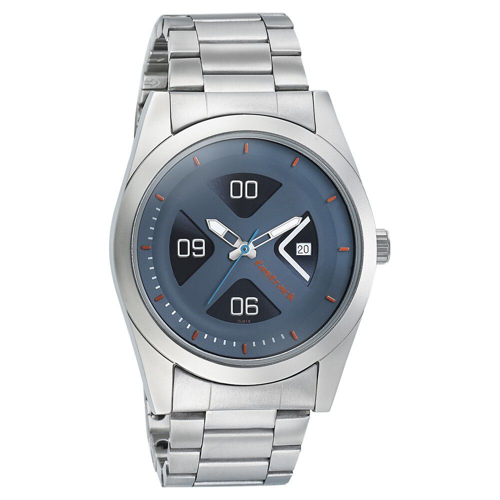 Fastrack Go Skate Quartz Analog with Date Blue Dial Stainless Steel Strap Watch for Guys NS3218SM01