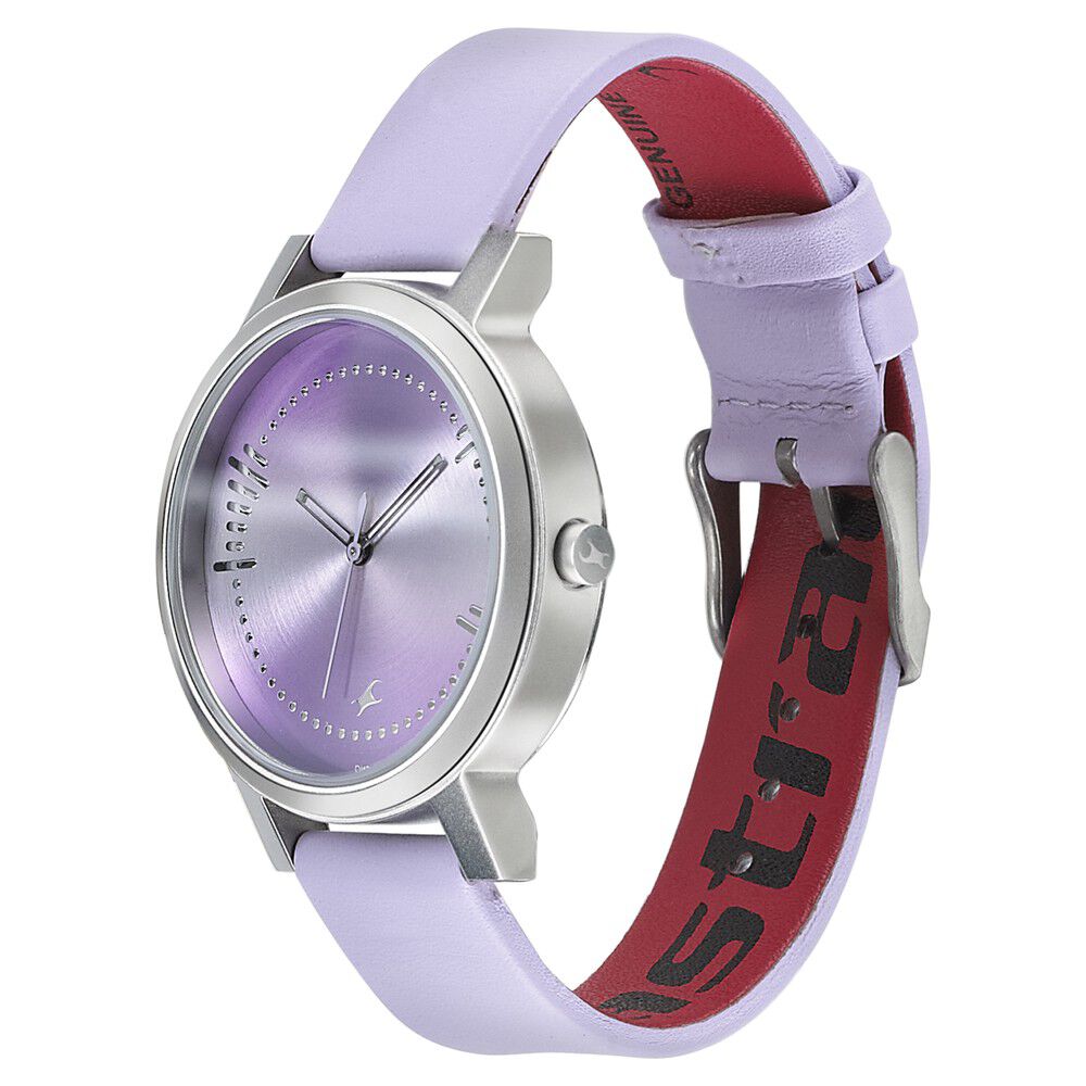 Fastrack Sunburn Quartz Analog Purple Dial Leather Strap Watch for Girls NP6213SL02