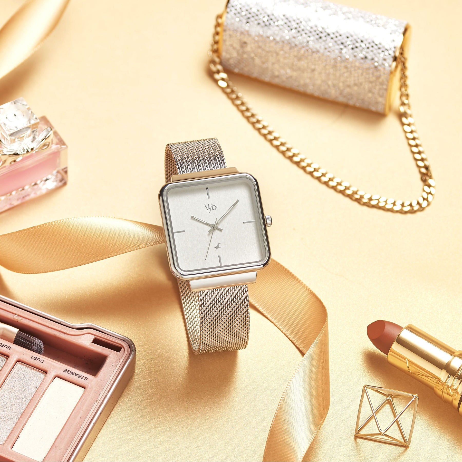 Fastrack Vyb Minimalist Quartz Analog Silver Dial Stainless Steel Strap Watch for Girls FV60012SM01W