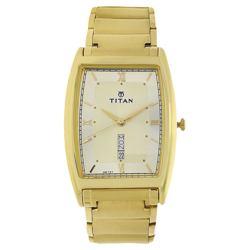 Titan Champagne Dial Analog with Day Stainless Steel Strap Watch for Men-NH1640YM05