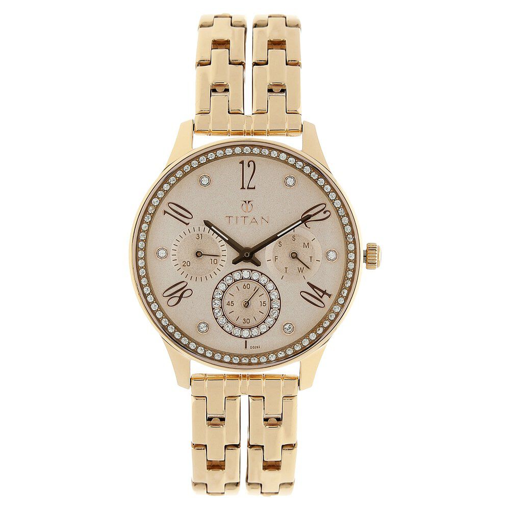 Titan Purple Rose Gold Dial Quartz Multifunction Stainless Steel Strap Watch for Women NS95040WM01