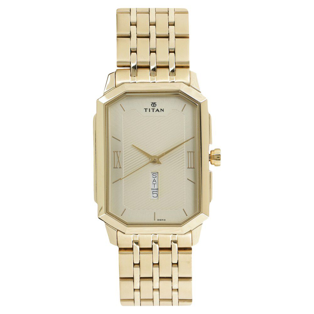 Titan Regalia Baron Champagne Dial Analog with Day and Date Stainless Steel Strap watch for Men-NN1743YM01