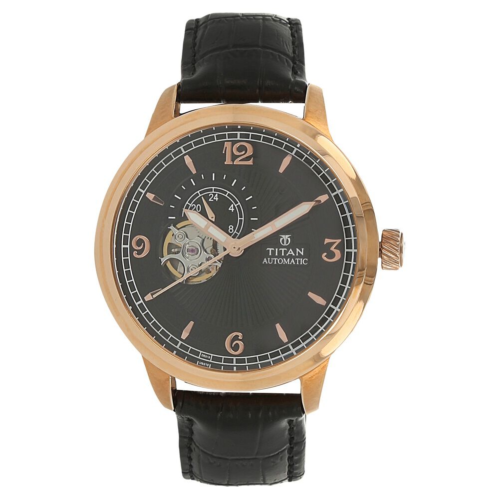 Titan Automatic Black Dial Leather Strap Watch for Men-NH90036WL02J