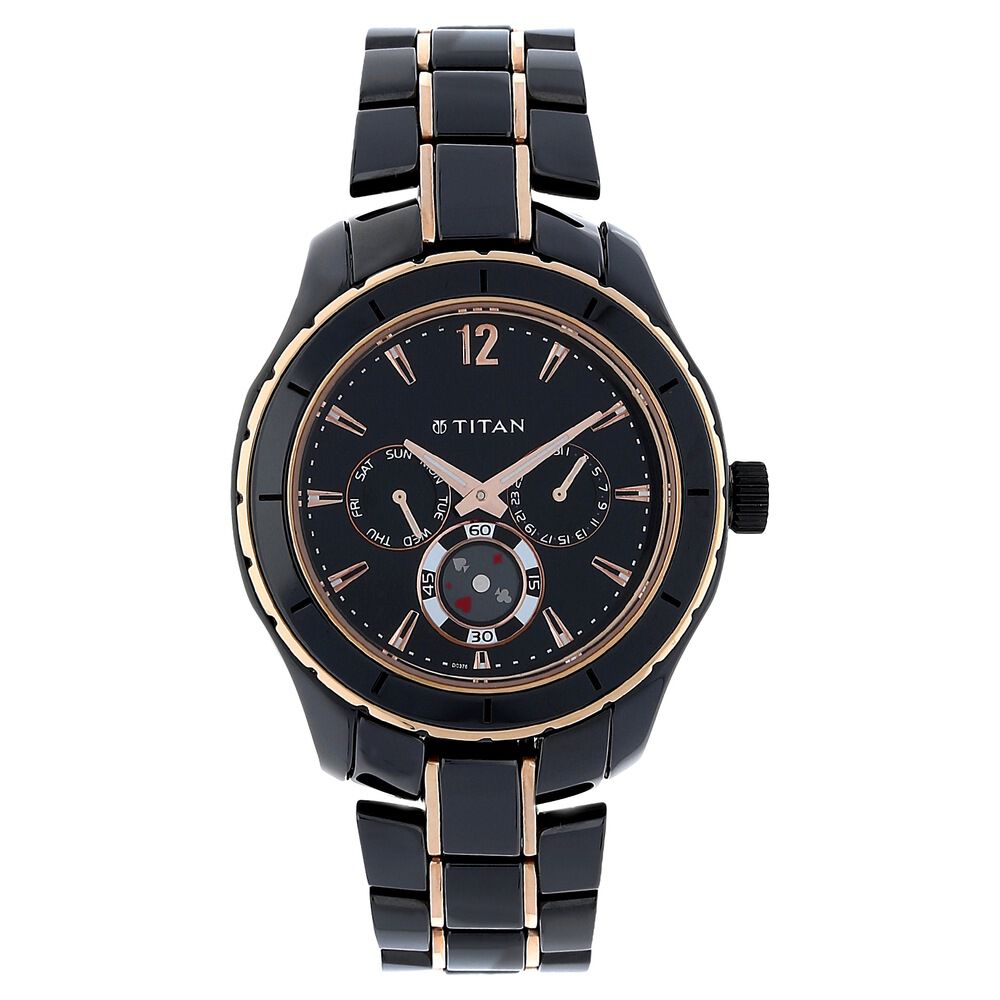 Titan Ceramic Black Dial Analog with Day and Date Stainless Steel Strap Watch for Men-NK9452KD02