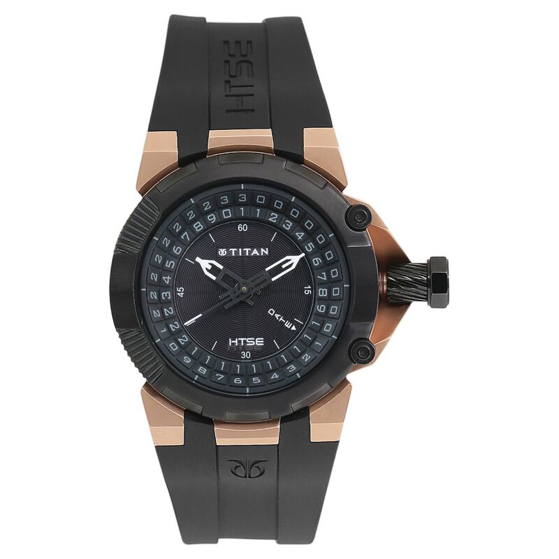 Titan Quartz Analog Solar Black Dial Plastic Strap Watch For Men