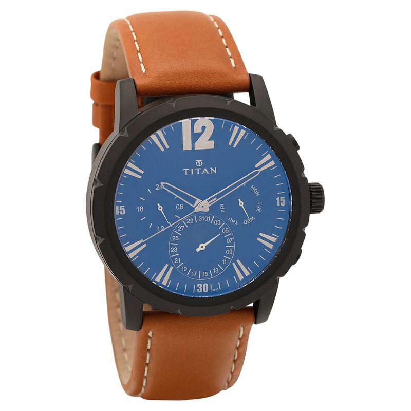 Titan Quartz Multifunction Black Dial Leather Strap Watch For Men