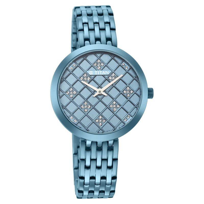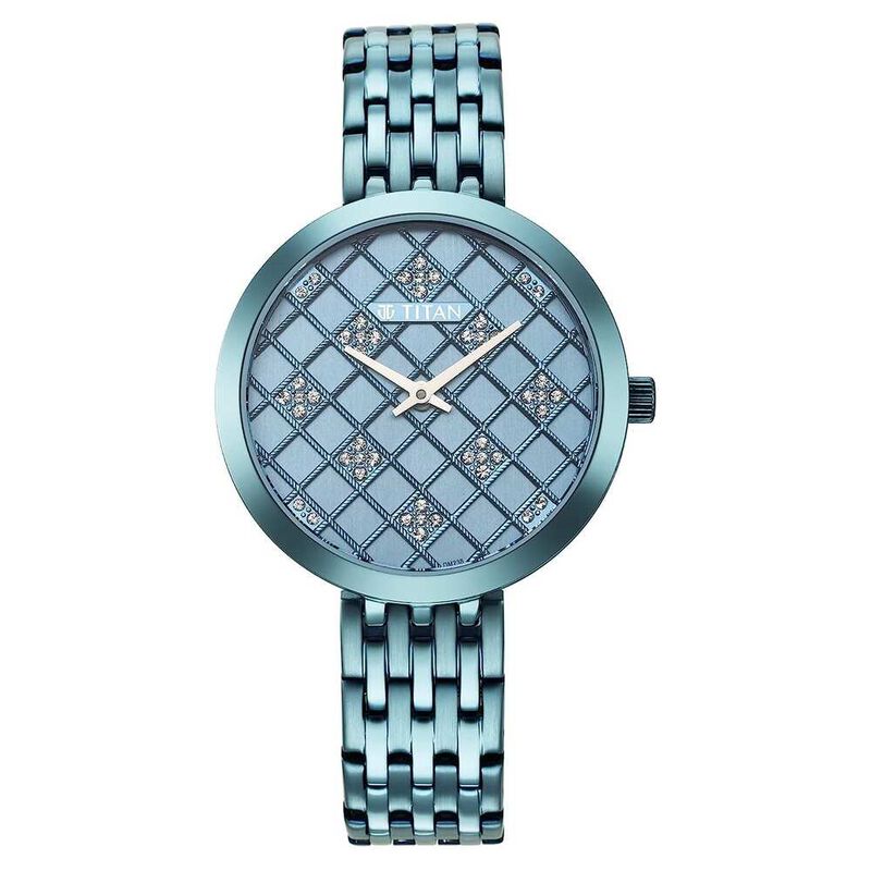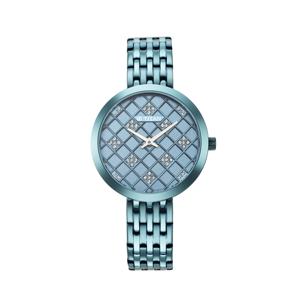 Titan Purple Unending Beauty Blue Dial Women Watch With Stainless Steel Strap