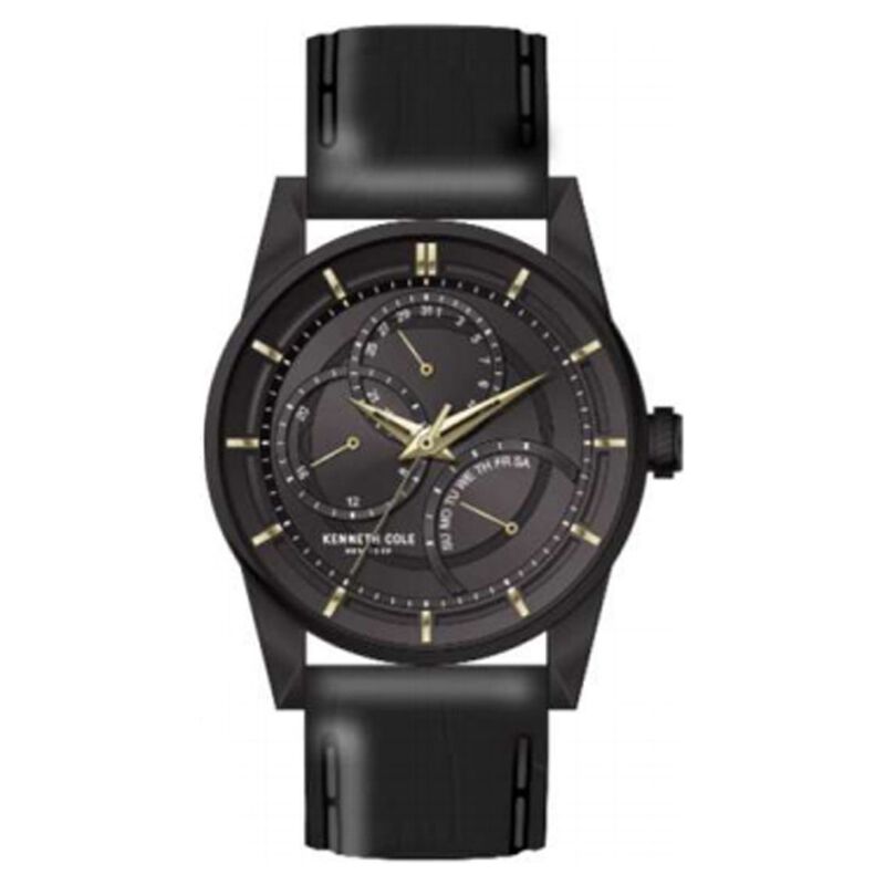 Kenneth Cole Quartz Multifunction Black Dial Leather Strap Watch For Men