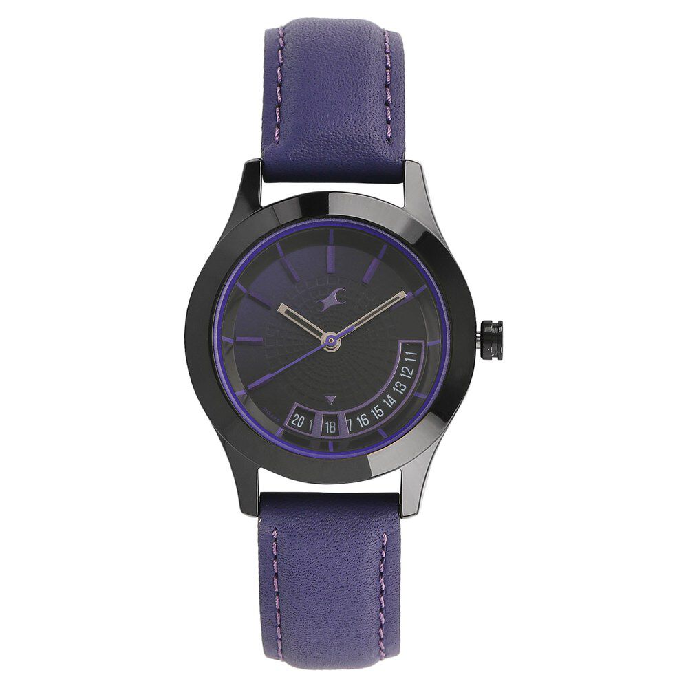 Fastrack All Nighters Quartz Analog Purple Dial Leather Strap Watch for Girls NP6165NL01