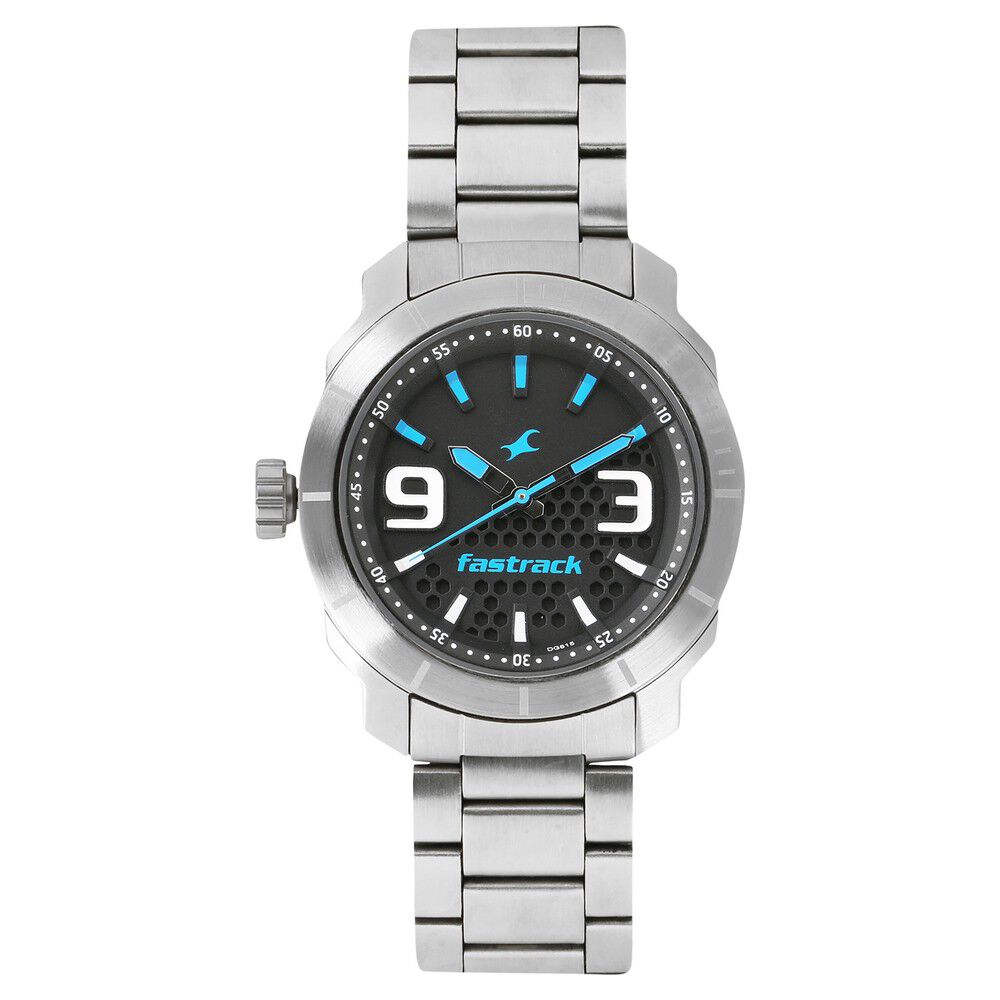 Fastrack Loopholes Quartz Multifunction Black Dial Stainless Steel Strap Watch for Guys NR3169NM01