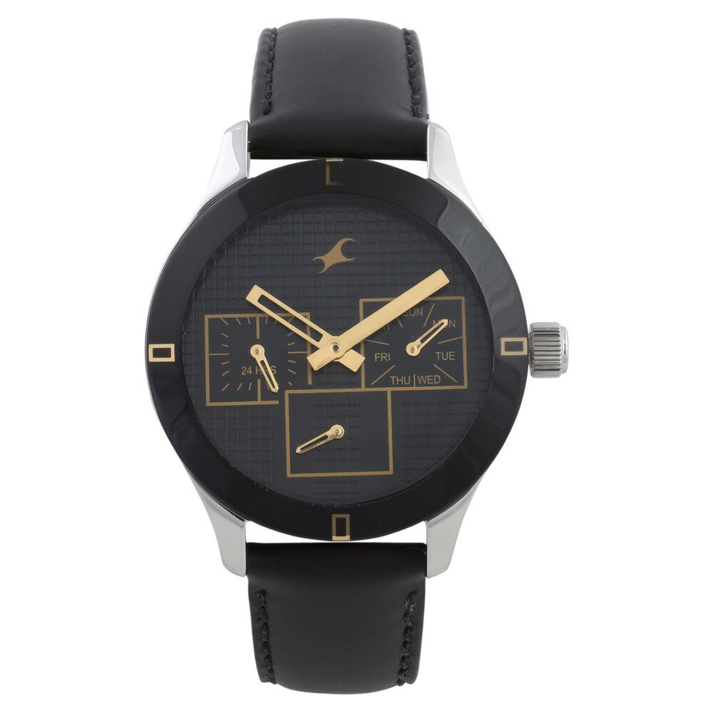 Fastrack Quartz Analog Black Dial Leather Strap Watch for Guys NS3120SL02