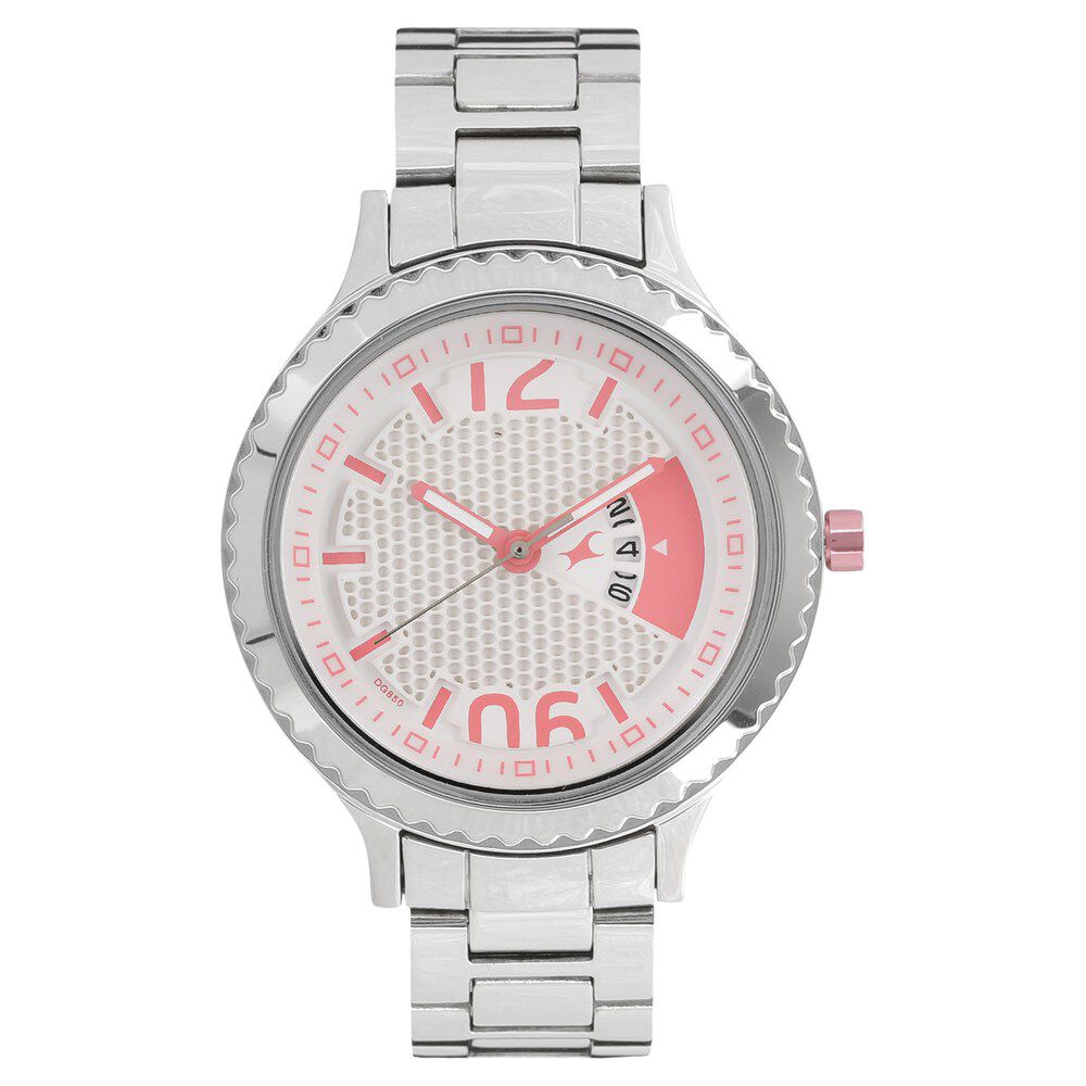 Fastrack Loopholes Quartz Analog with Date White Dial Stainless Steel Strap Watch for Girls 6168SM02