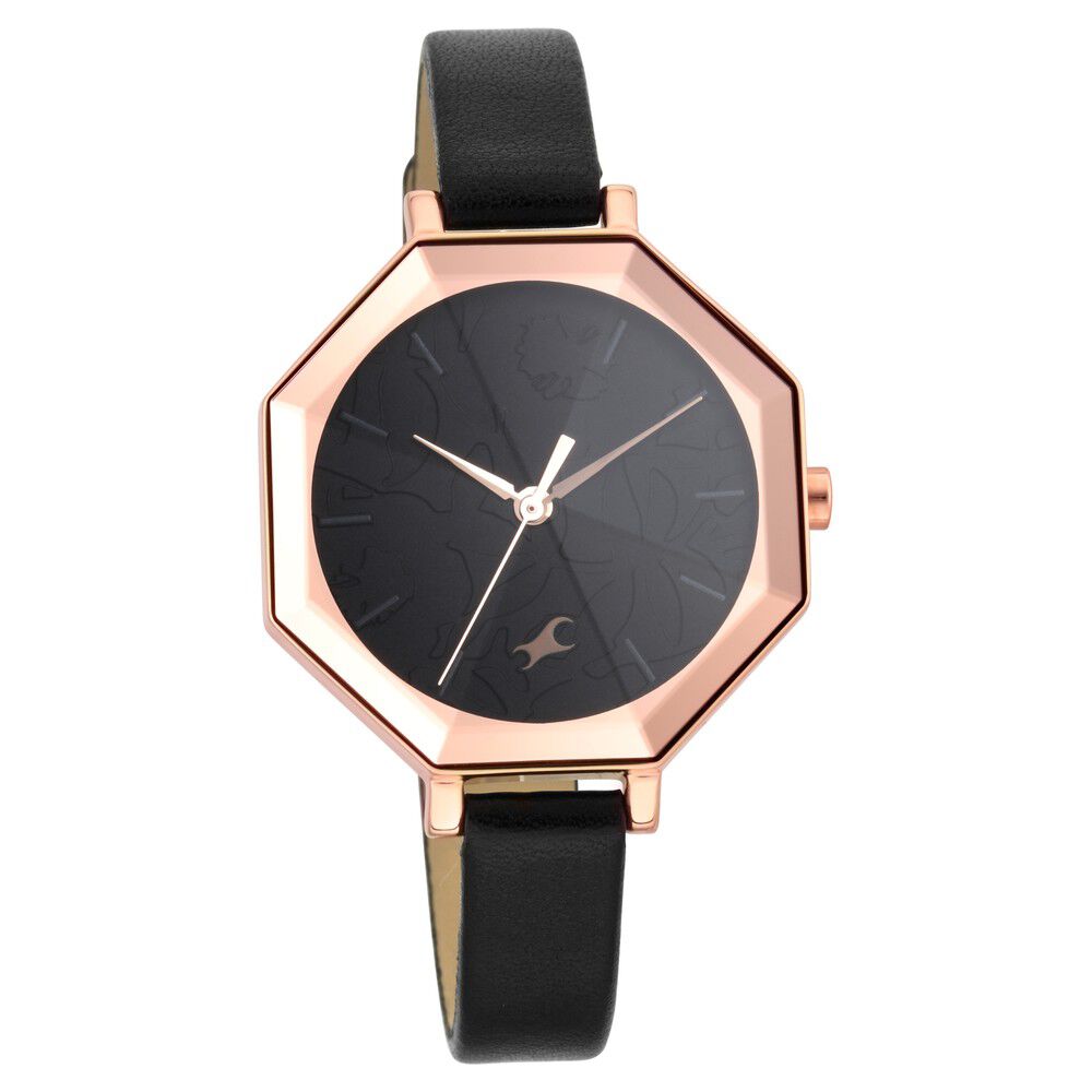 Fastrack Quartz Analog Black Dial Leather Strap Watch for Girls NS6015SL02
