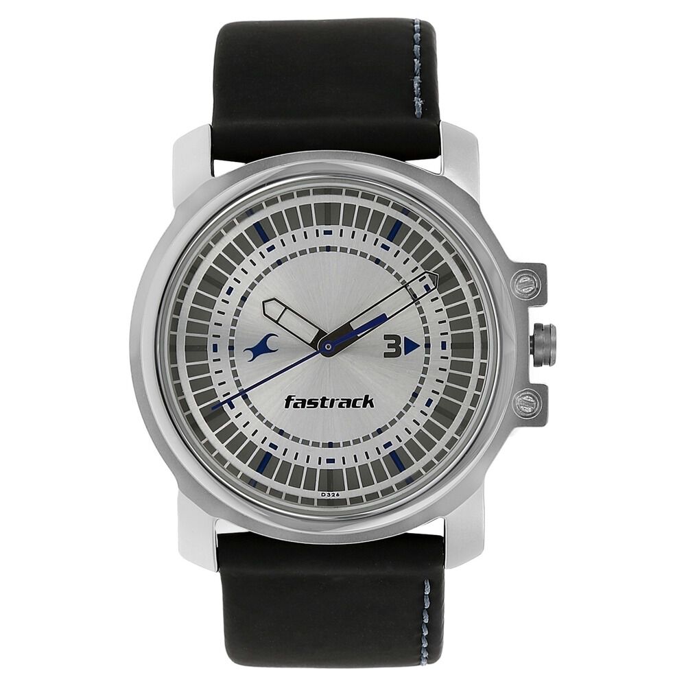 Fastrack Quartz Analog Silver Dial Leather Strap Watch for Guys NS3039SL01