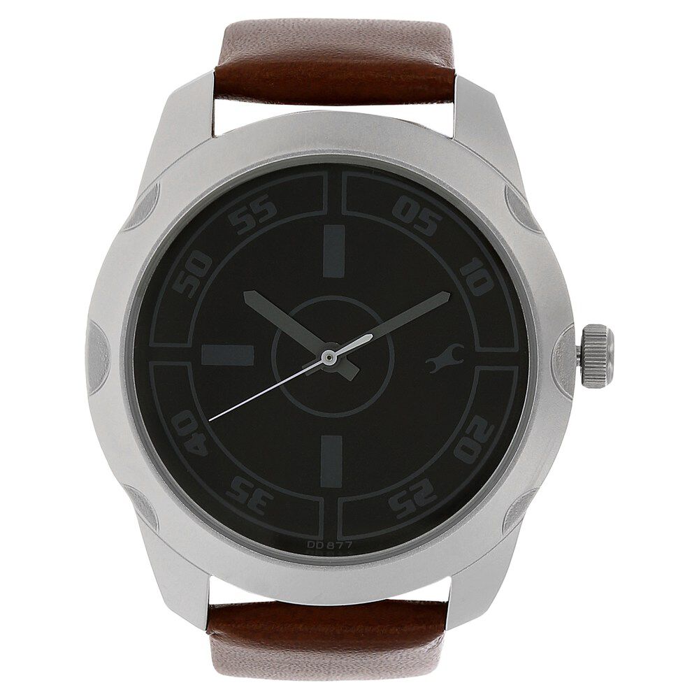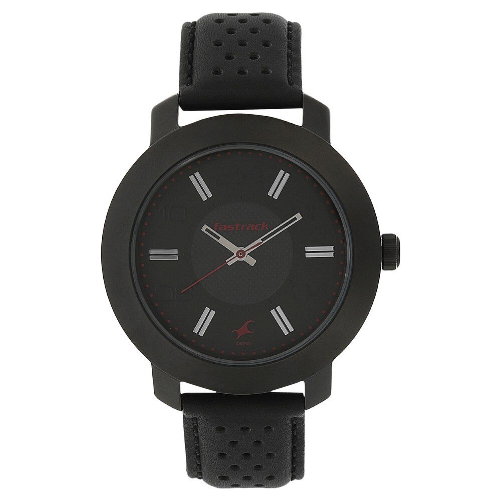 Fastrack Quartz Analog Black Dial Leather Strap Watch for Guys NS3123SL03