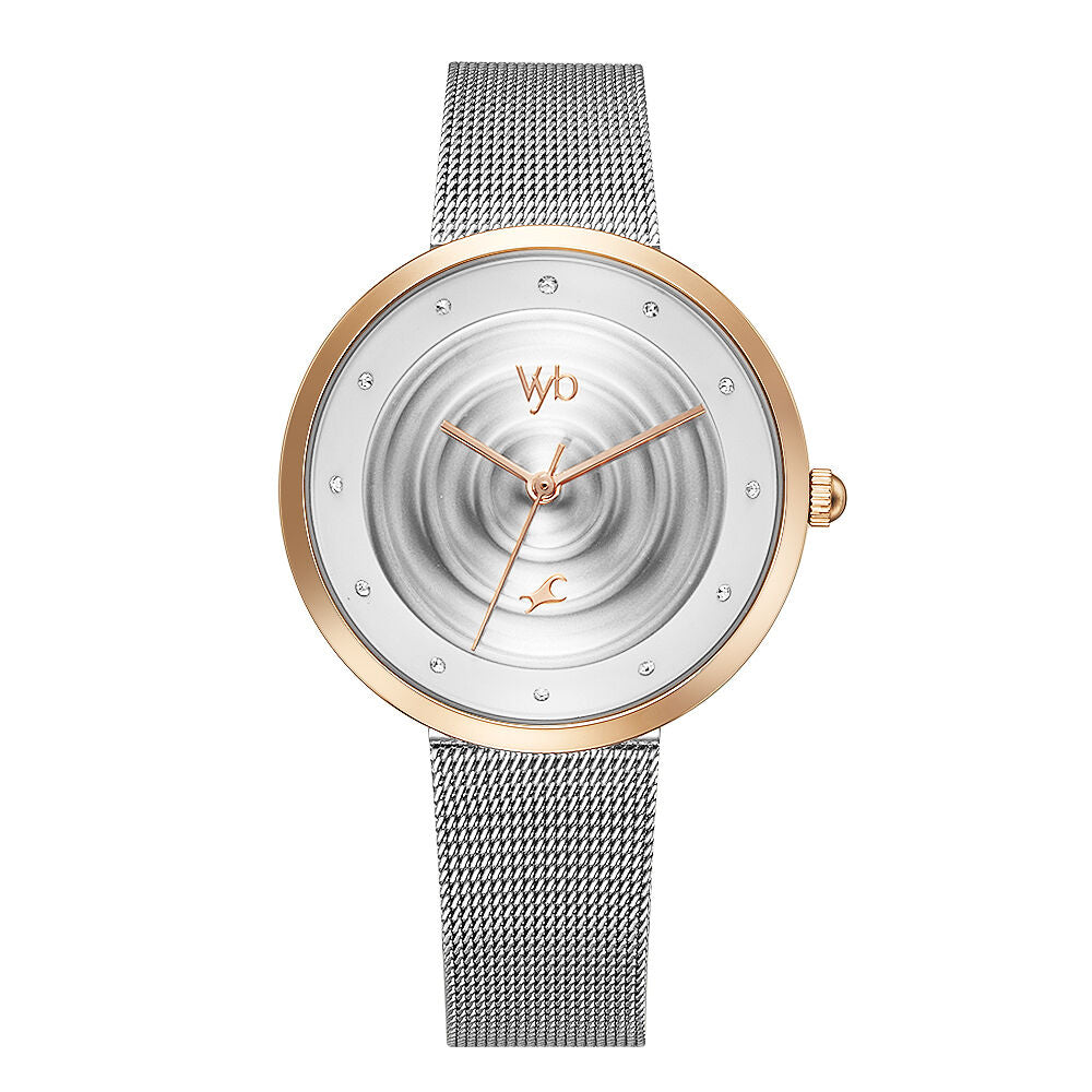 Fastrack Vyb Manifester Quartz Analog Silver Dial Stainless Steel Strap Watch for Girls FV60006KM02W