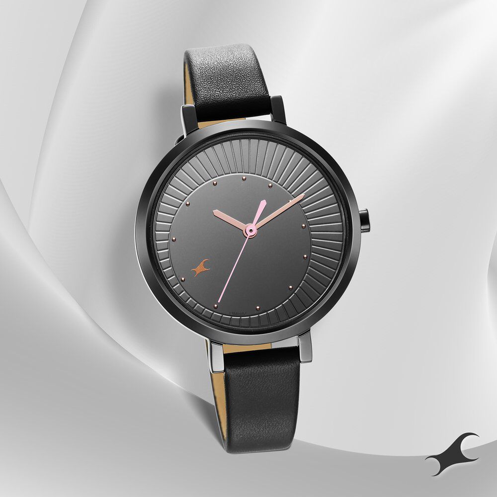 Fastrack Style Up Black Dial Leather Strap Watch for Girls NS6230NL02