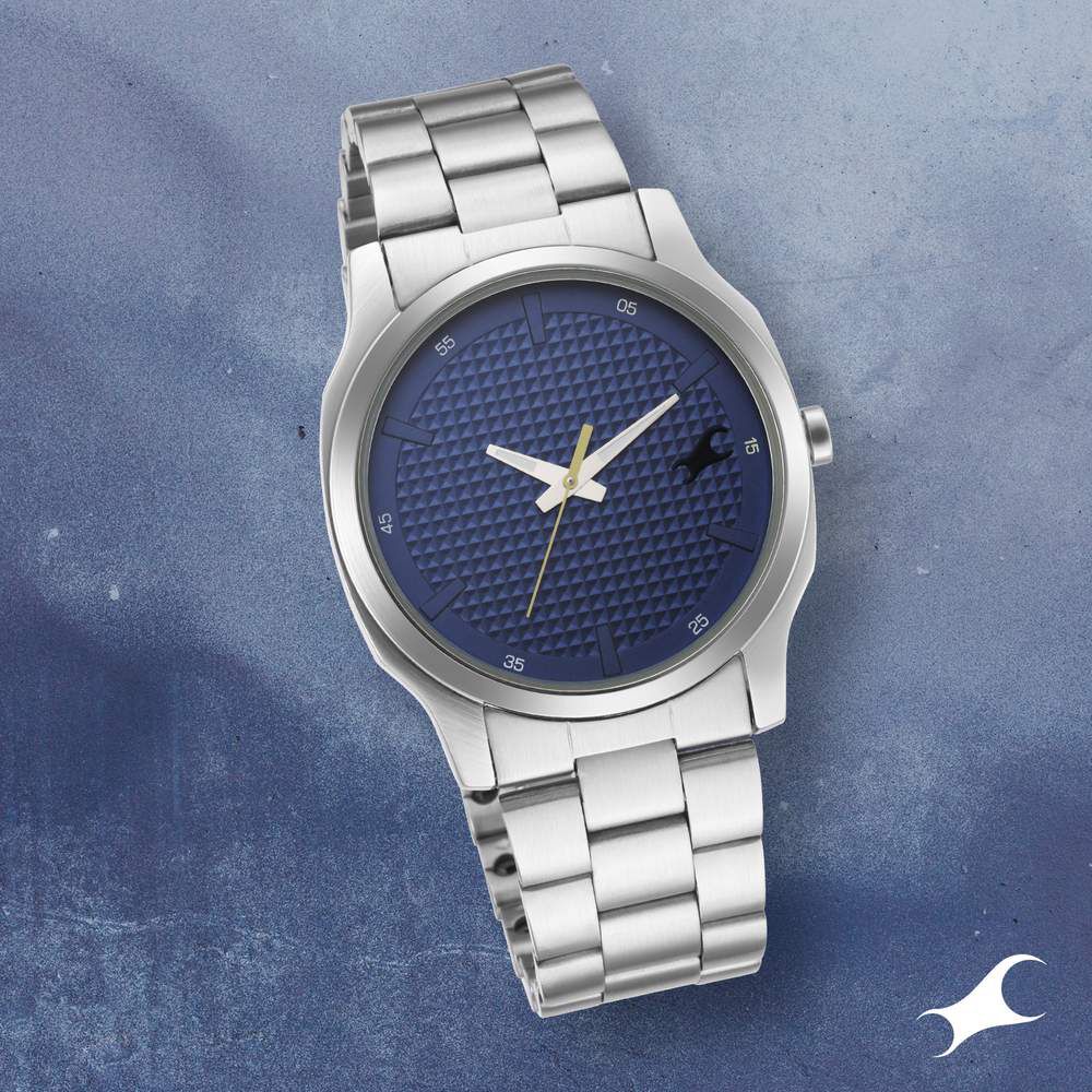 Fastrack Stunners Quartz Analog Blue Dial Metal Strap Watch for Guys NR3255SM01